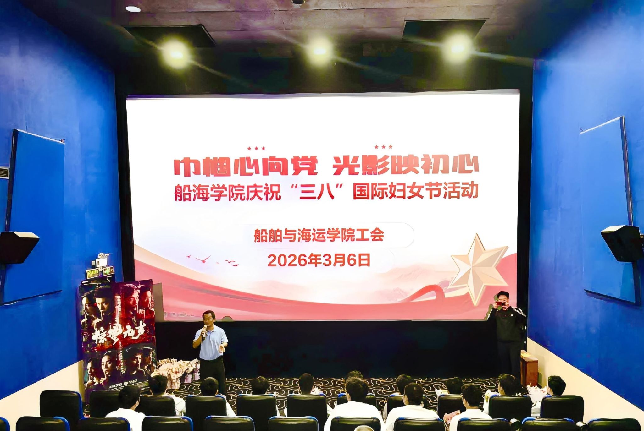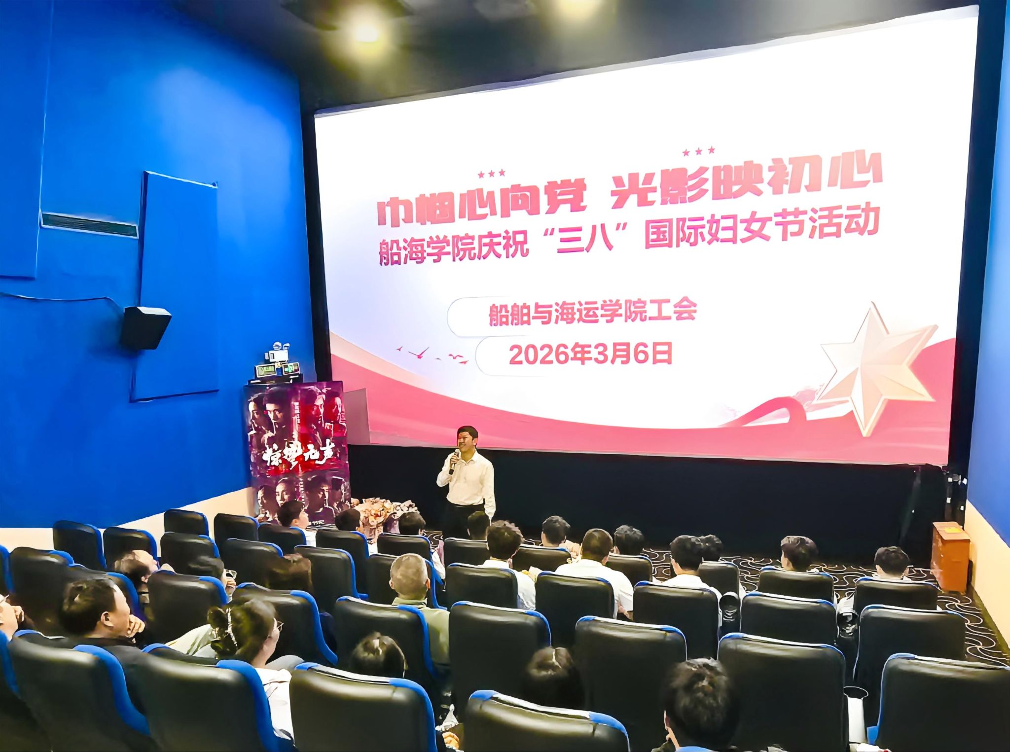 庆祝第116个“三八”国际劳动妇女节,丰富学院女教职工精神文化生活,不断增强师生国家安全意识,3月6日下午,学院组织100余名师生开展了以“巾帼心向党,光影映初心”为主题的集体观影活动,活动由学院工会主席齐昊主持。