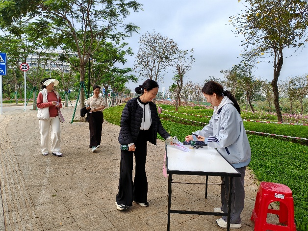 活动中,老师们结伴而行,依次前往鲲鹏园、西溪谷、致远亭、花田等特色打卡点。漫步在春意盎然的校园,大家赏繁花、观新景,畅聊畅谈,在自然美景中放松身心,在互动交流中增进情谊,现场处处洋溢着轻松愉悦的氛围。